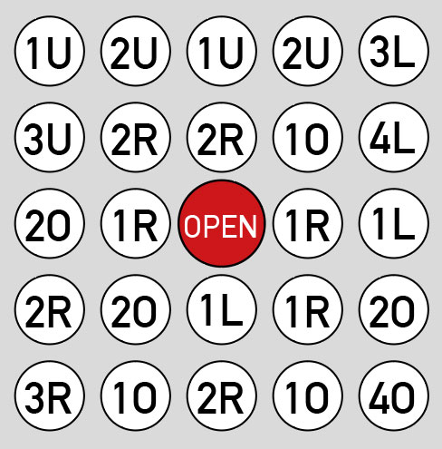 Ein Quadrat mit Zahlen und Buchstaben, in der Mitte ein rotes Feld. Ziel war es wohl, mit der richtigen Kombination in die Mitte der Felder zu kommen.